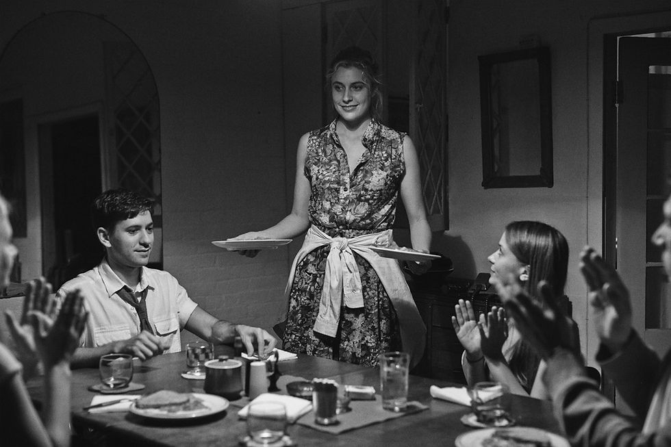 There was actually one country where it was projected in color. I think Croatia. So everything in the movie was dressed for color, just in case. But we knew the whole time that it would be black and white. I would toggle back and forth on the monitor between color and black and white to make sure it was okay.
